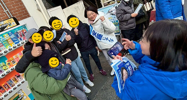 16時からは、新八柱駅にて比例代表南関東ブロックの角田ひでお候補・原田直樹候補と合同で演説会を行いました。